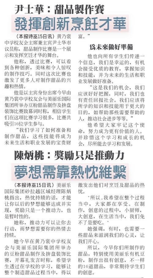 15/04 与美丽乐国际集团联办"2023年黄乃裳中学甜品制作比赛"