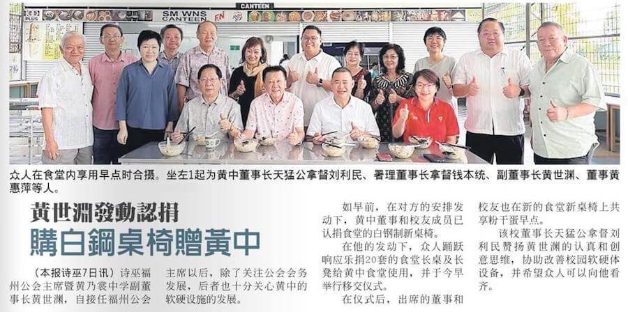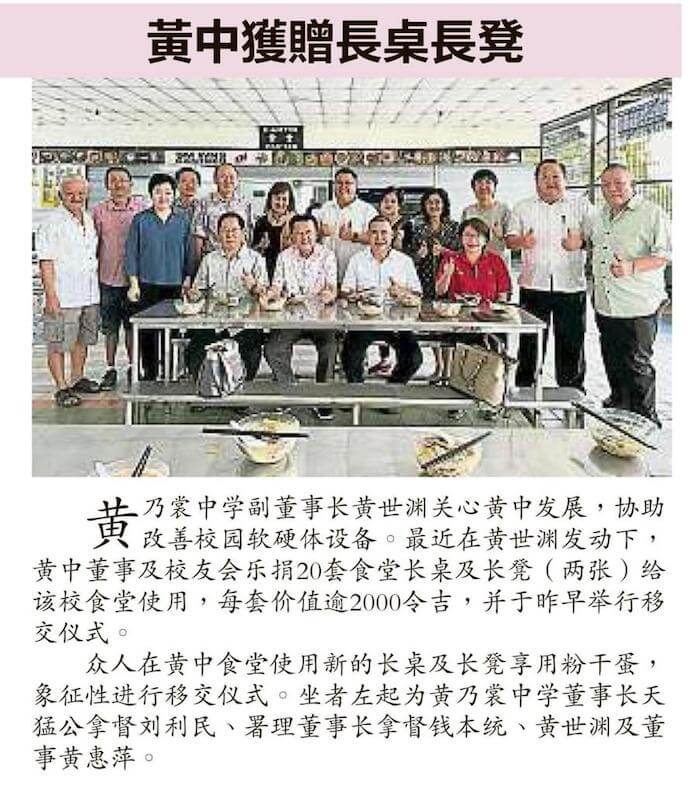 07/07 黄中董事及校友会乐捐20套食堂长桌及长凳